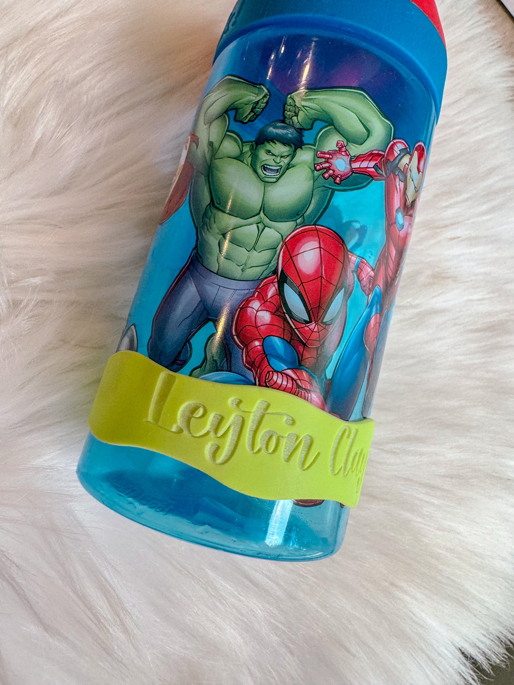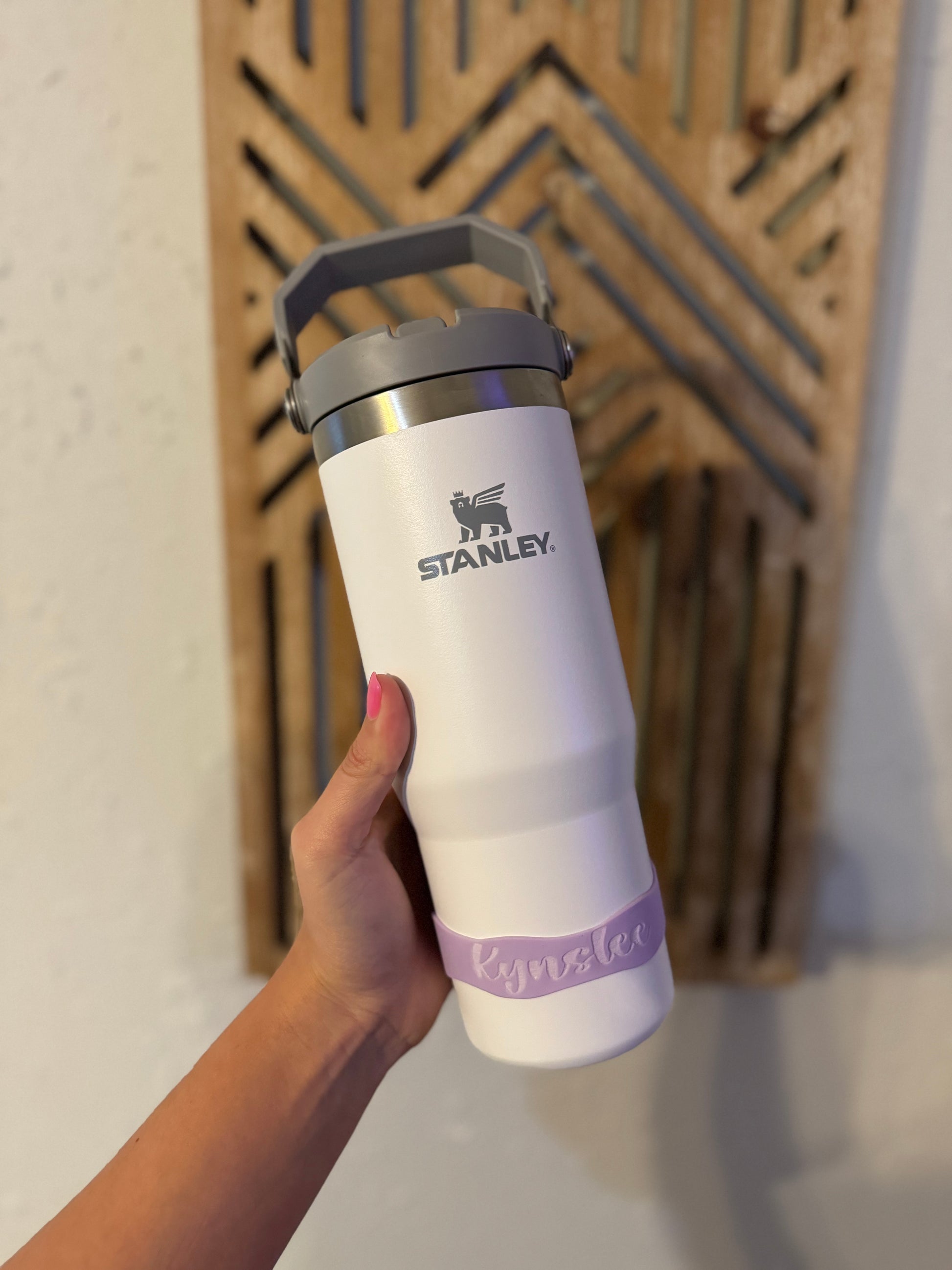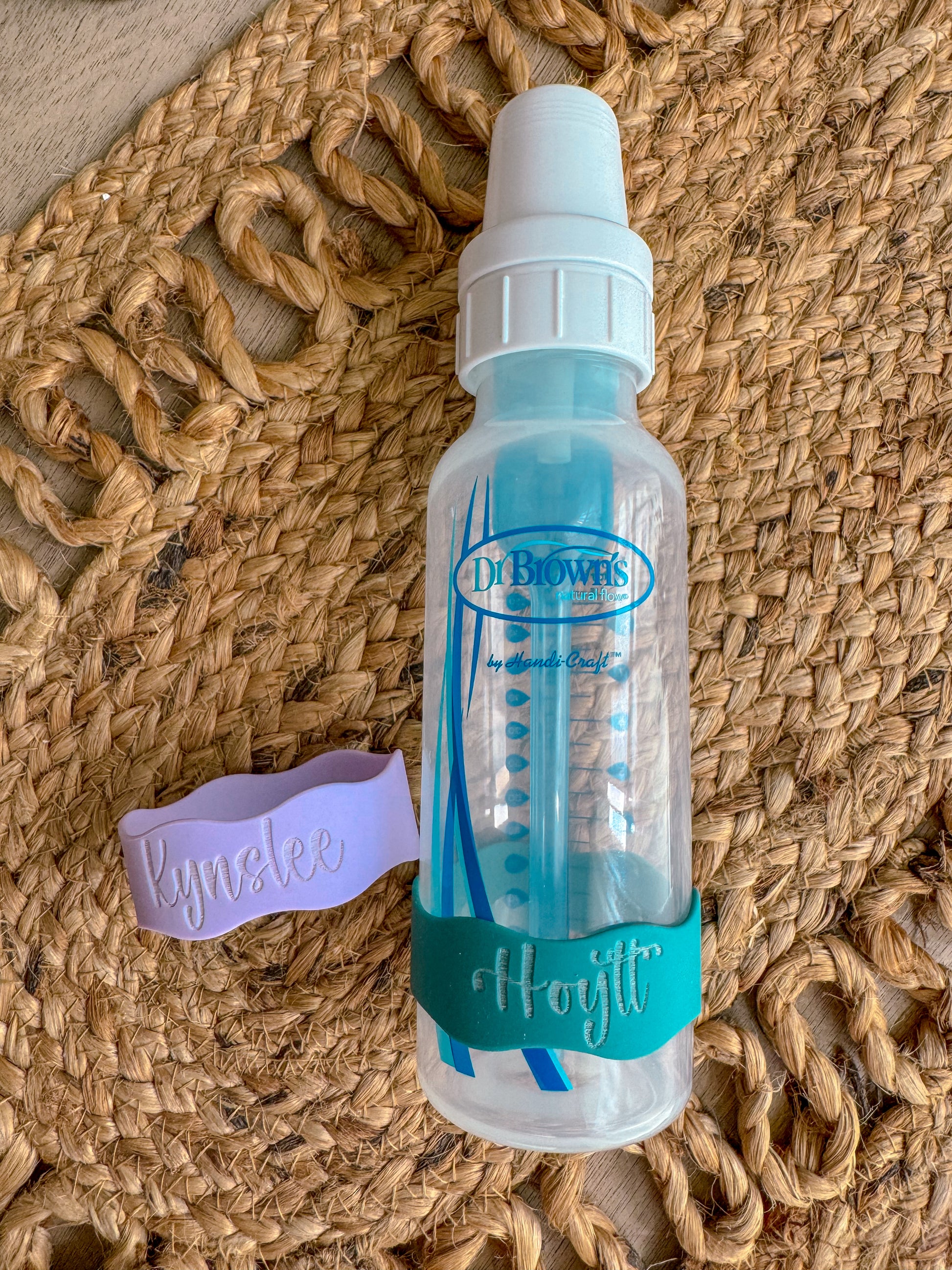 Never lose a cup or bottle at school again with this custom engraved silicone band. Easily taken off to wash and change cups. Drop your preferred color and name to be engraved below.